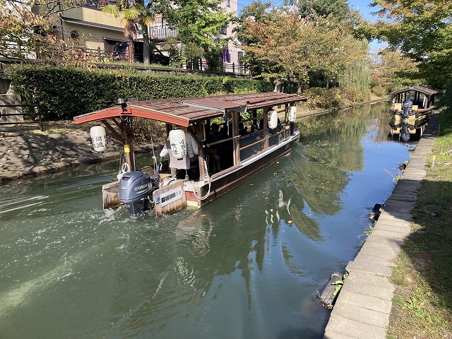 翌日は朝から伏見へ移動して十石舟へ乗船。朝のさわやかな風とほんのり色づき始めた紅葉に癒されます~