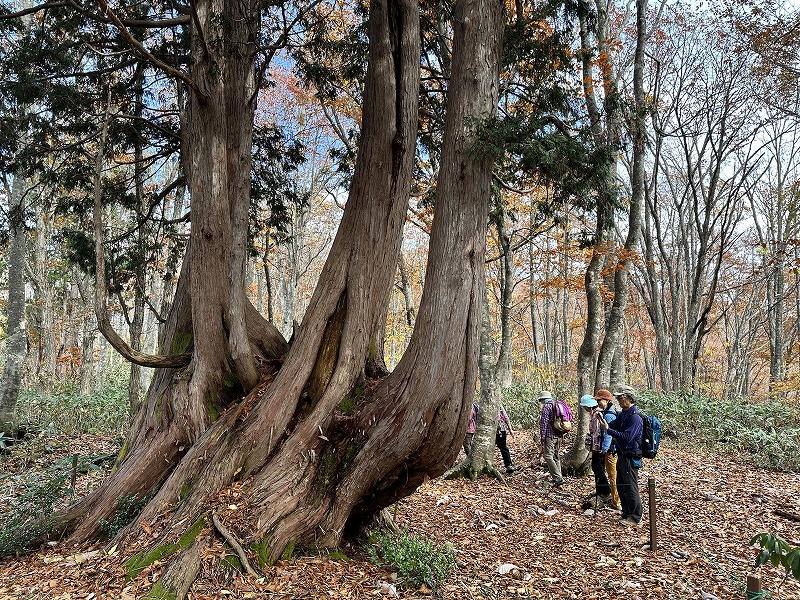 神秘的な原生林が残る静かな場所、ねずこの森から岩岳山の絶景ハイキングを楽しみましょう。