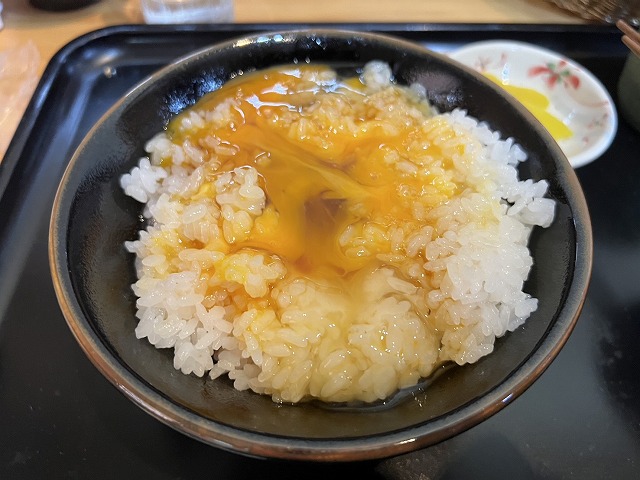 下山後は卵かけごはんで有名な但熊へ行きました。