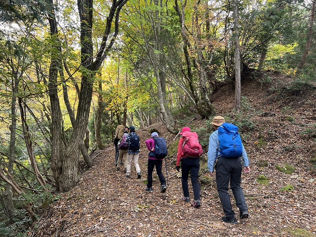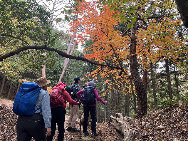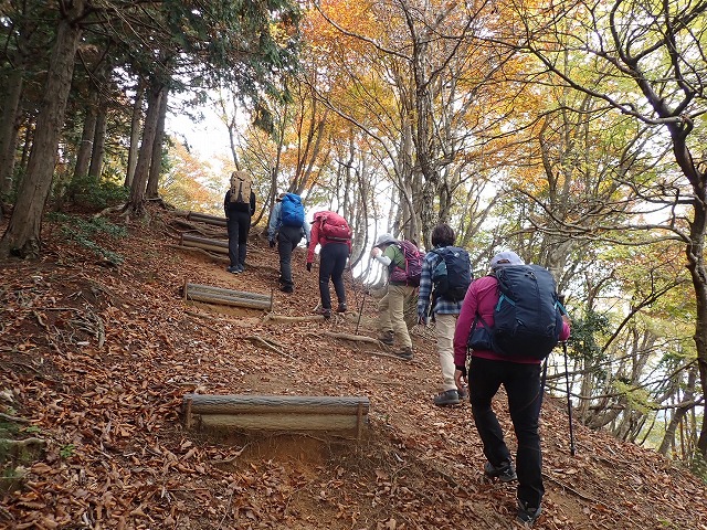 紅葉と落ち葉でフカフカな登山道を進んでいきます。