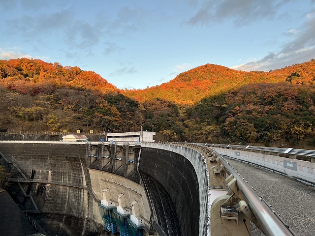 最後に天ヶ瀬ダムを見学しました!夕日で光る紅葉の山が綺麗でした!