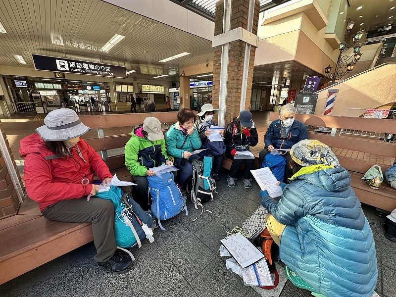 大阪駅から阪急箕面駅へ移動して、はなちゃんこと松尾ガイドと合流して地図読み講座スタート。