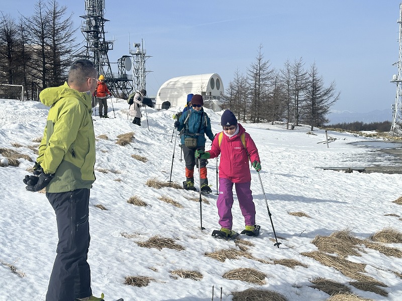 2日目は王ヶ鼻までスノーシューハイキング。今年は例年以上に雪が少なく、雪のあるところを見つけながらスノーシューを楽しみました。