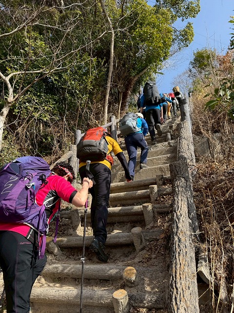 スタートからいきなりの急登階段。これがなかなかキツい。