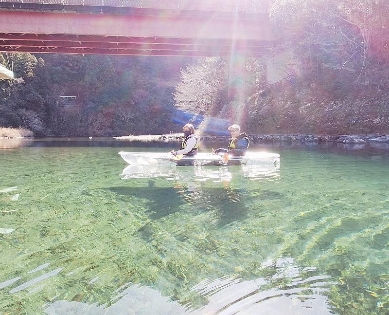 船体がクリアなため水中眼鏡をつけているように川底が見え、周りの自然だけでなく水の中をお散歩している気分を味わえます。
