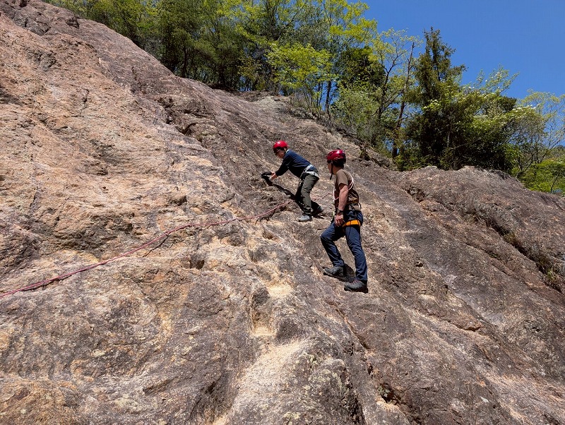 初夏の陽気の中、蓬莱峡で岩登りのトレーニングを行ないましたぁ♬