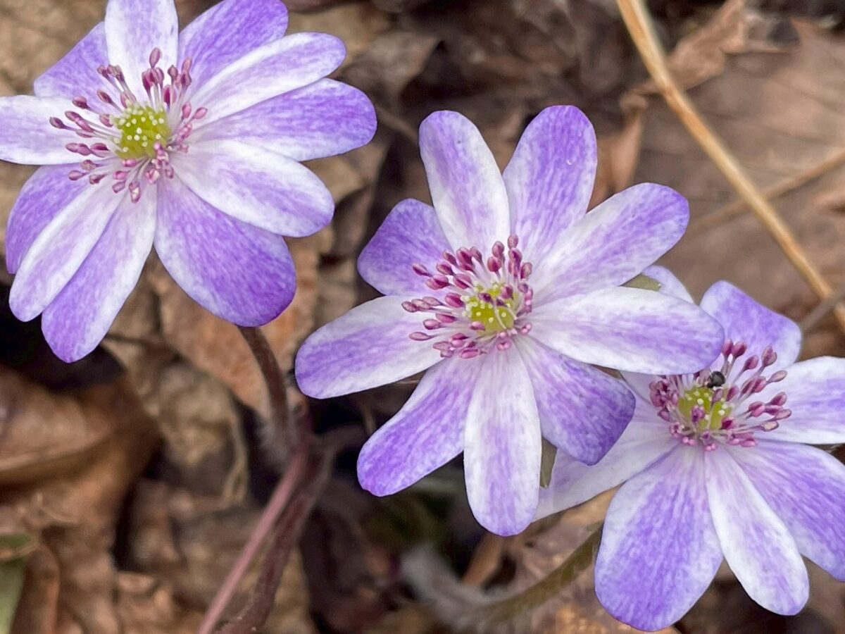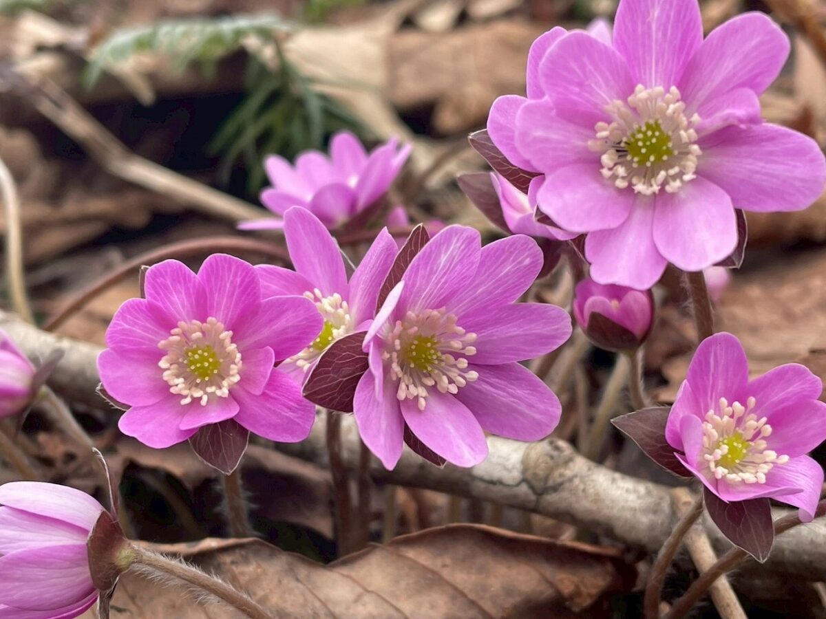 佐渡のユキワリソウ(オオミスミソウ)の花びらは4枚~16枚くらいまでいろいろ、色もピンクや青、紫、白、縁取りの花、シマシマの花などほんとびっくりです。