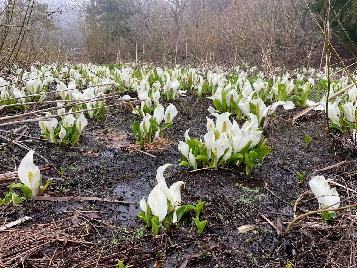 ミズバショウの大群生、鈴なりの白いイカリソウなどこの時期はお花好きにはたまんないですね。