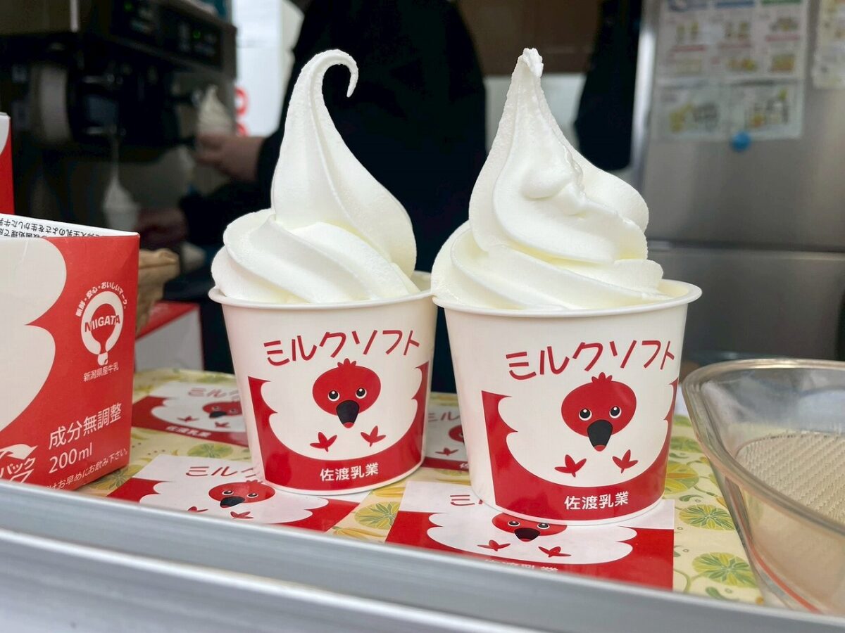 シュンランやカンアオイ、山には花いっぱいです。佐渡牛乳のソフトクリームは絶品です。営業時間と同時に並びました(笑)