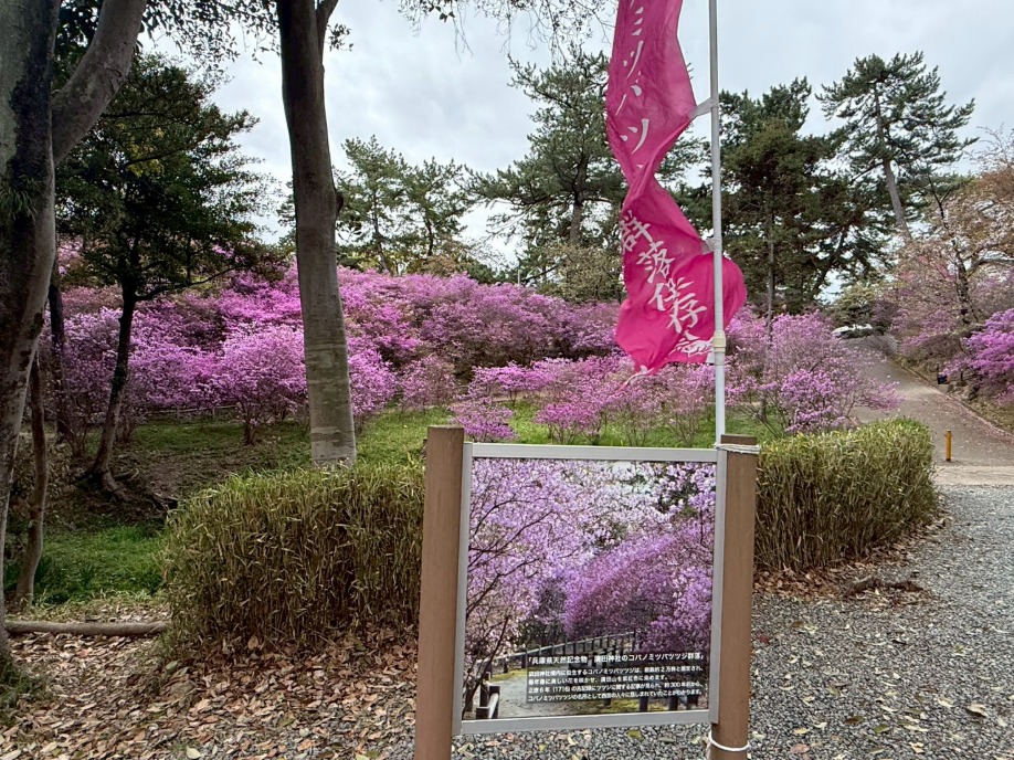 まずは山旅人事務所近くの広田神社へ。コバノミツバツツジの群生がとても綺麗で、春の訪れを感じます。