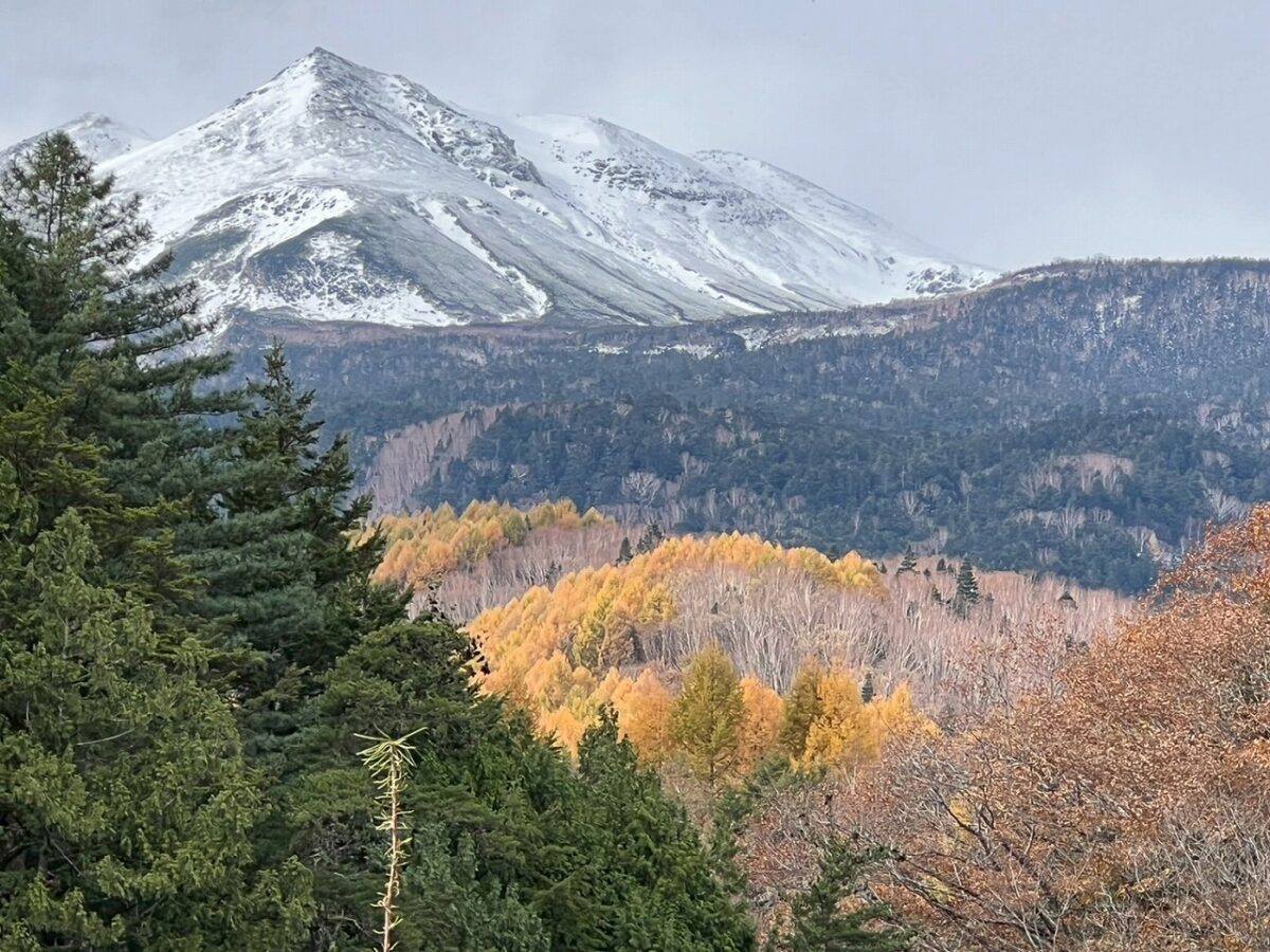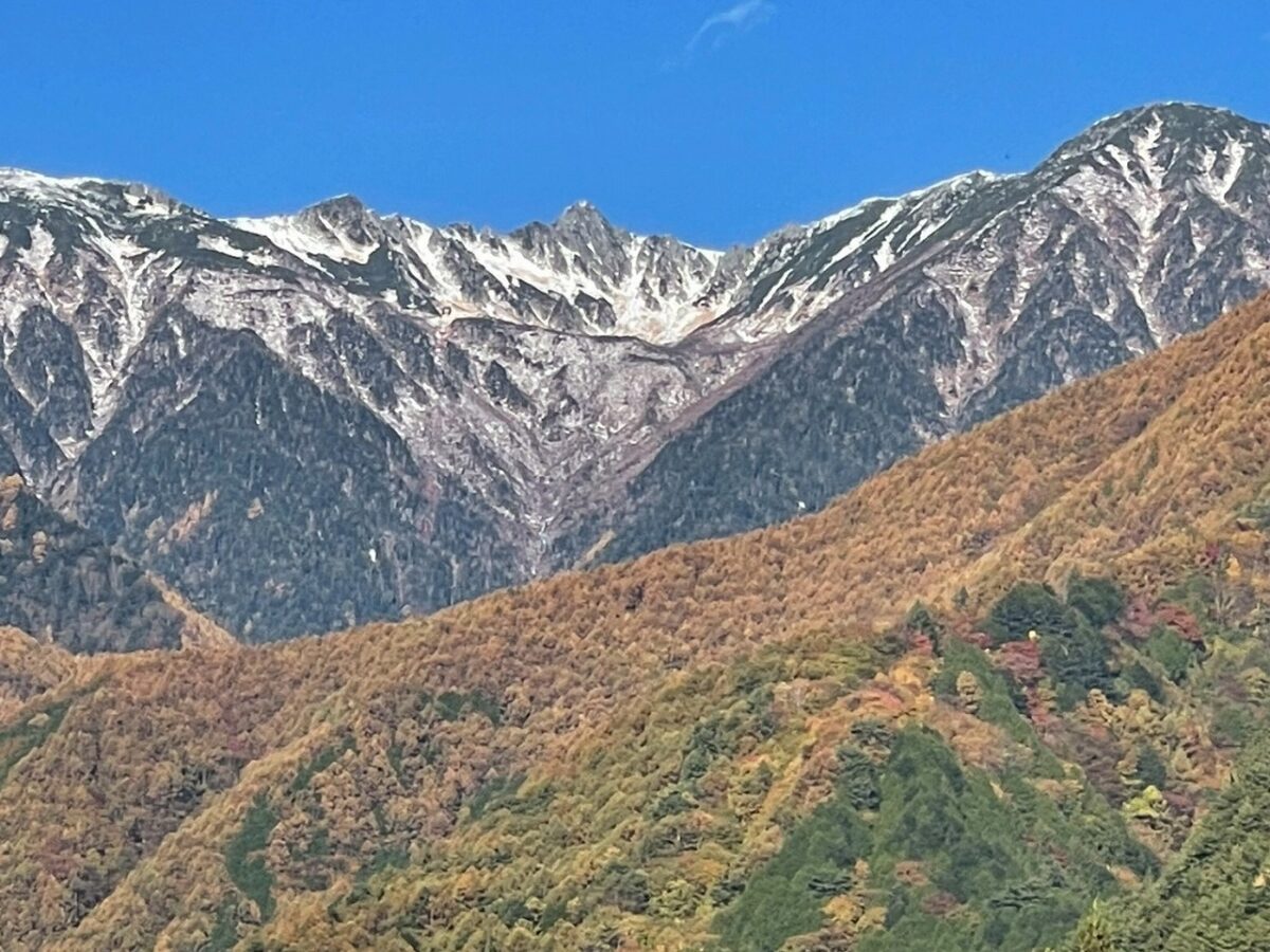 乗鞍高原まで足を延ばして紅葉と乗鞍の頭は真っ白(^▽^)、そして中央アルプスも白く、暑い夏もあっという間に冬支度です。