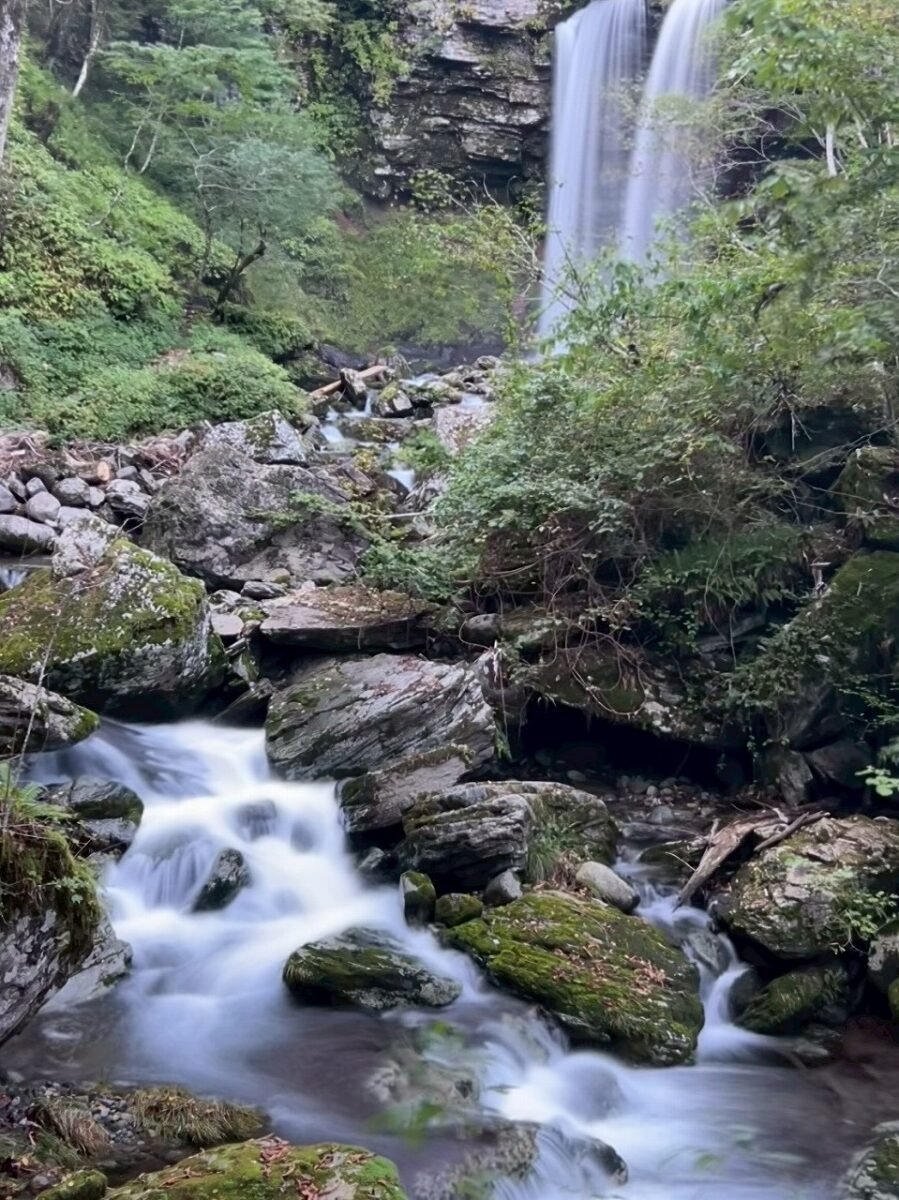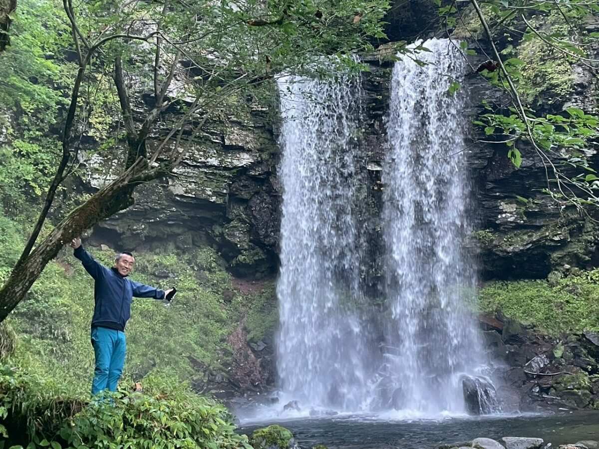 Ⅰさんからの手作りの美味しすぎる栗きんとんの差し入れを食べてニコリ(^▽^)。武村ガイドのおすすめの滝巡りへ。夫婦滝。