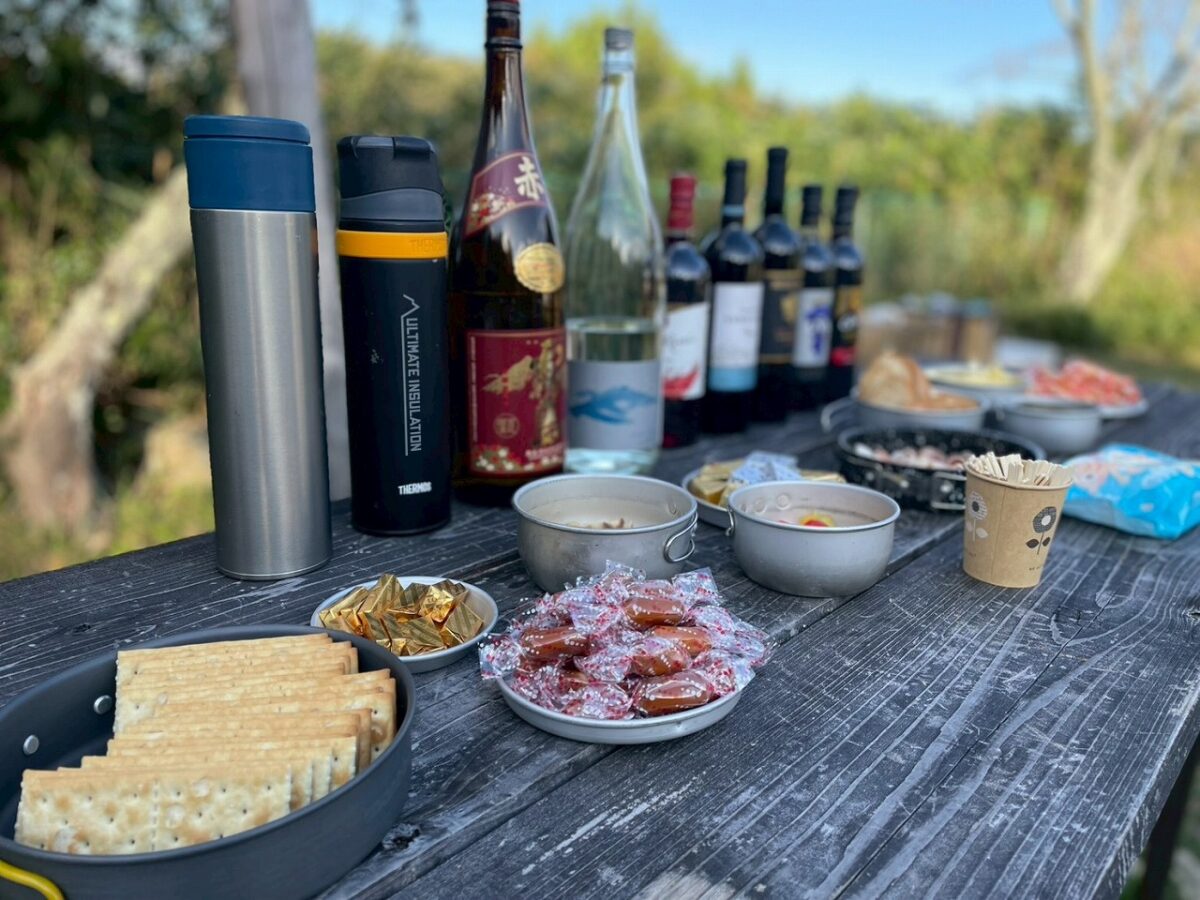 テントで宿泊。朝は御来光を見に行って戻ってきたら山内ガイドの美味しいホットサンドの朝食と豆を挽いたコーヒーです。最高の朝食を食べて9時頃出発。山内ガイドと分かれて私たちは温泉と日生方面をぶらぶら~。楽しい2日間でした。