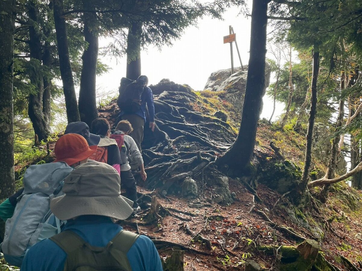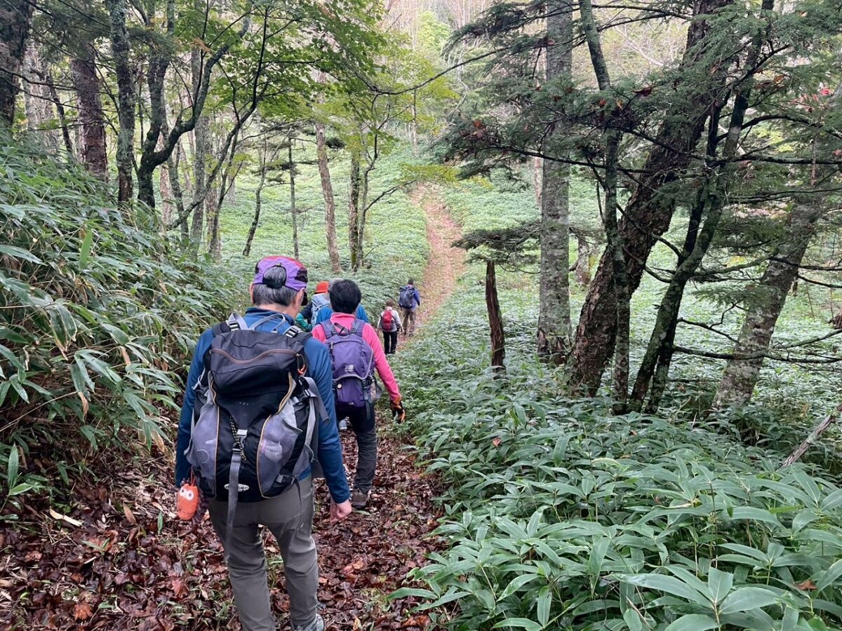 翌日は2~3万年前に、直径約45mの小惑星が衝突して形成されたといわれる御池山へ。気持ちのいい登山道を登り下り山頂を目指します。