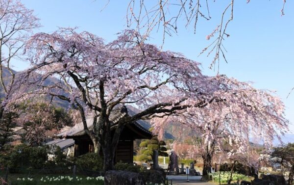 4月初旬から下旬にかけて信州の各所で、次から次へと春の花が開花します。雪解けに顔を出す山野草や残雪をたっぷりと抱くアルプスの峰々と満開の桜。まさに春の花が総出演している見事な風景です。今回の旅では枝垂れ桜で有名な光前寺の門前宿に泊り、周辺の花巡りを楽しみます。