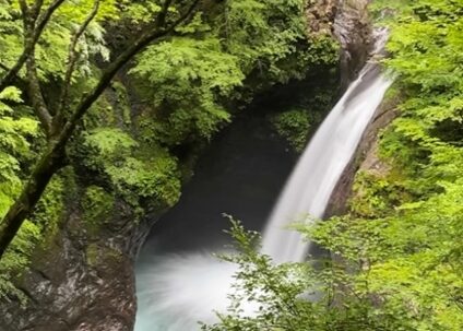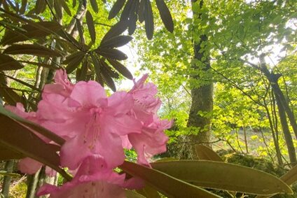 新緑の森と斜面を埋め尽くす花々 岳人の森 ヒメシャガ大群落
