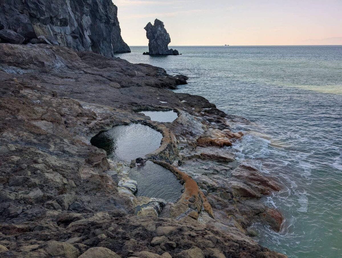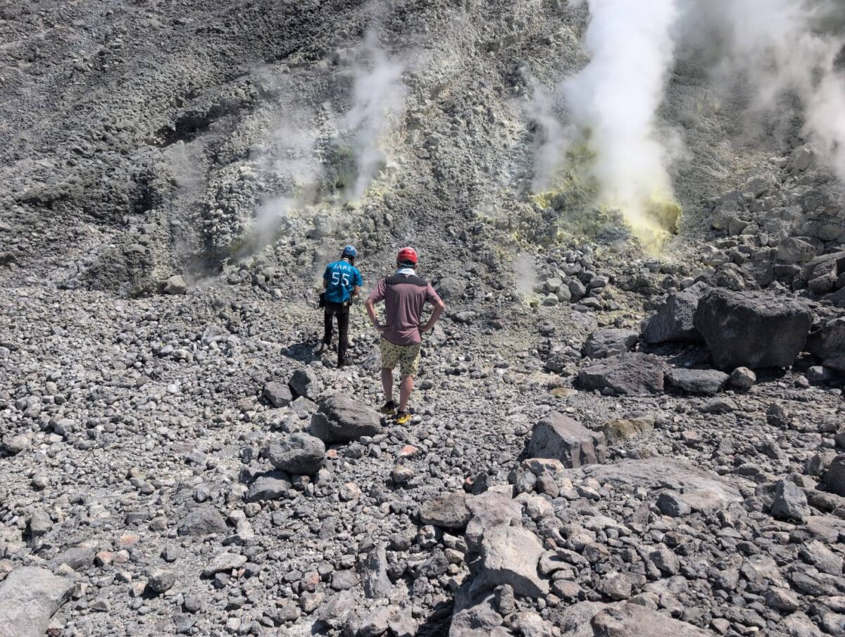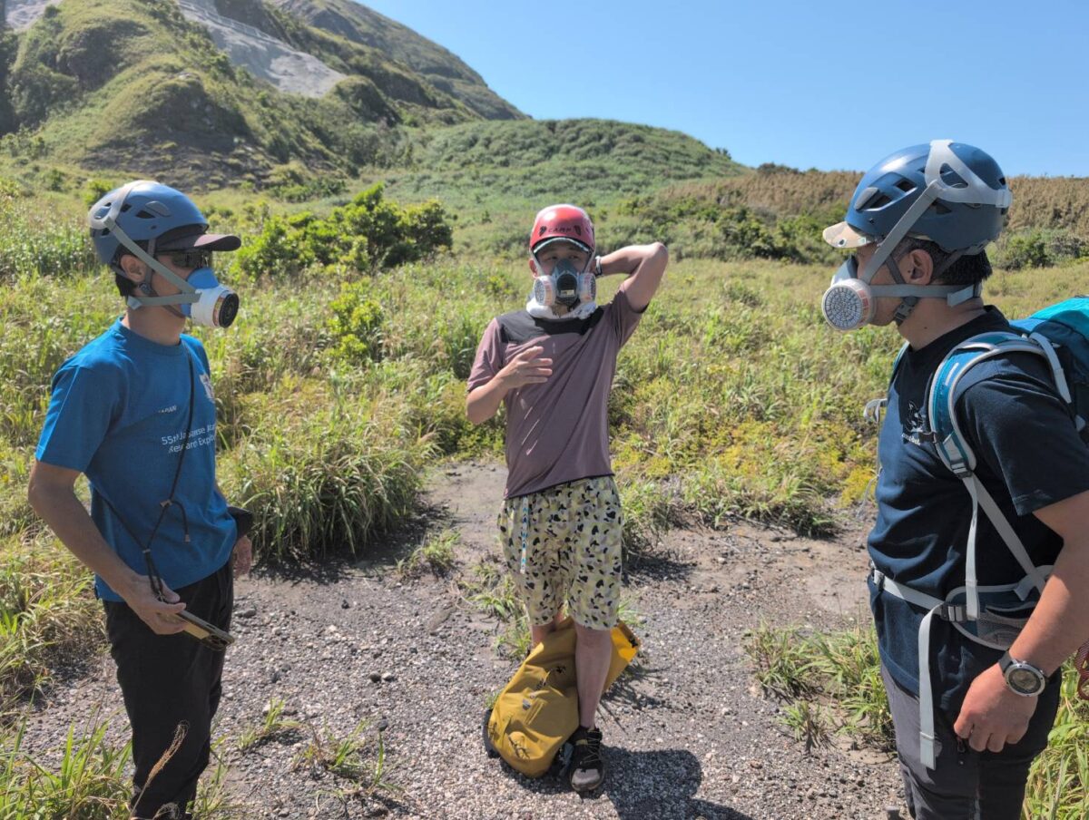 5/27 硫黄岳噴気口へ。現地専門ガイドの解説など。夕方は東温泉へ