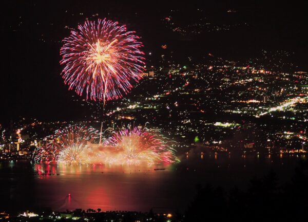 有名な諏訪湖の花火大会は、一度は見てみたい真夏の風物詩♪ 椅子席での観覧は価値があります。
