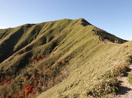 四国剣山はシコクザサで埋め尽くされた緑の稜線。秋は、山腹から山麓にかけて、木々が紅葉のグラデーションとなり言葉を失う絶景となる。
