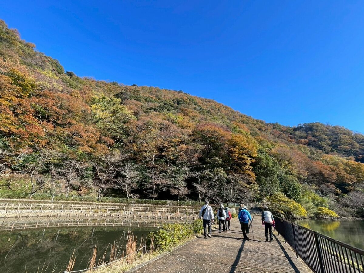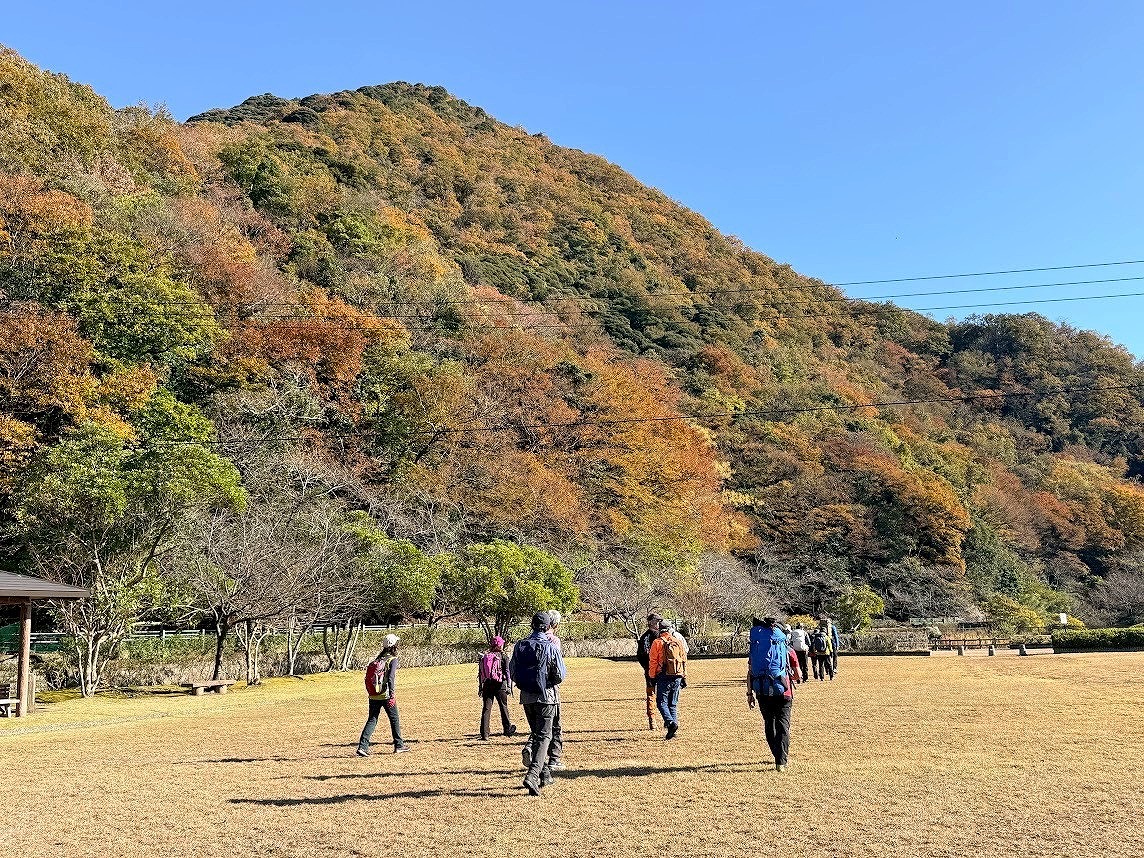いよいよ2日目はばっちり真っ青!感謝しかありません。 観音山は紅葉真っ最中!今回にご参加の皆様は6名でしたが地元の方もご協力いただき同行していただきそしてリピートさんも一緒に。盛り上がりますよね(笑)