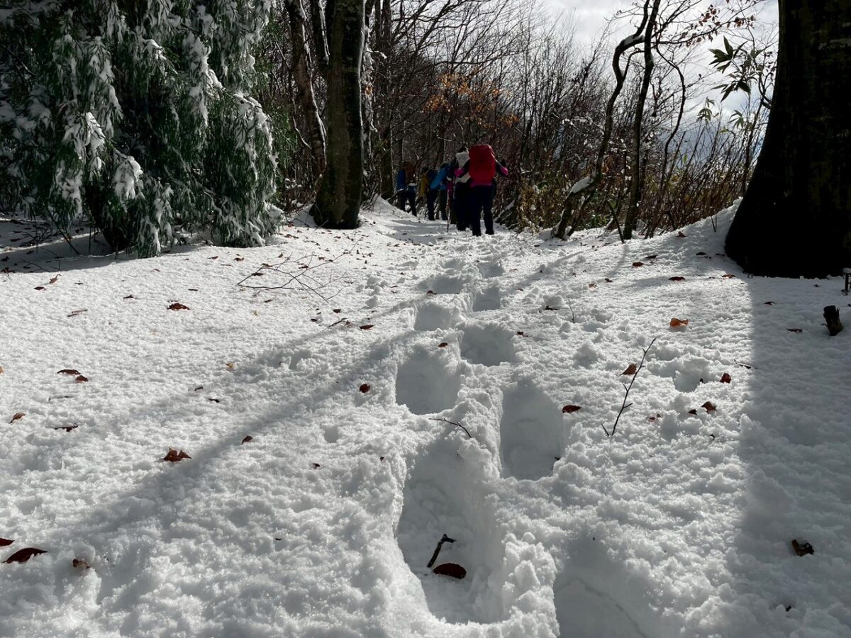 初日は扇ノ山へ。。。。なんとびっくり!!!登山口に近づくて道路脇に雪。。。どころか雪山登山に。ドライバーの方にも大変お世話になりました。